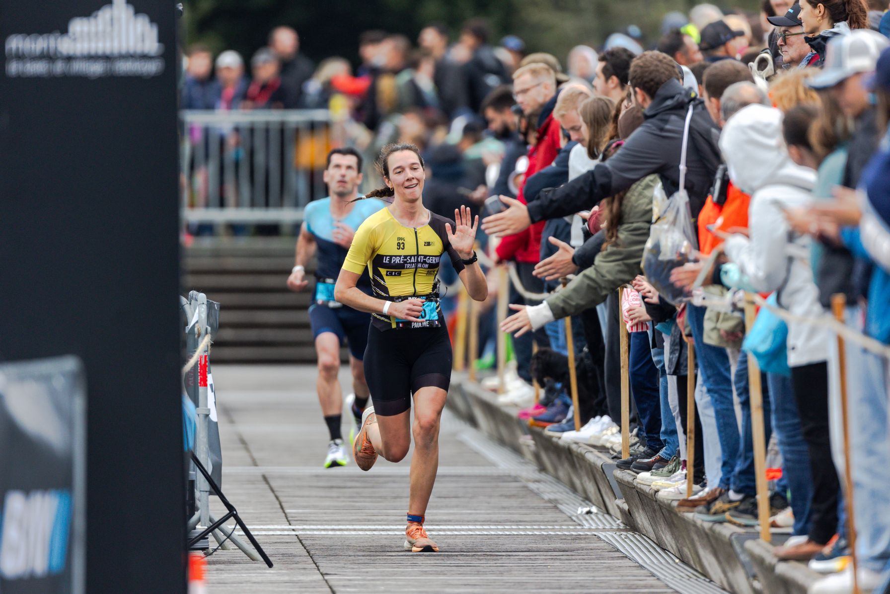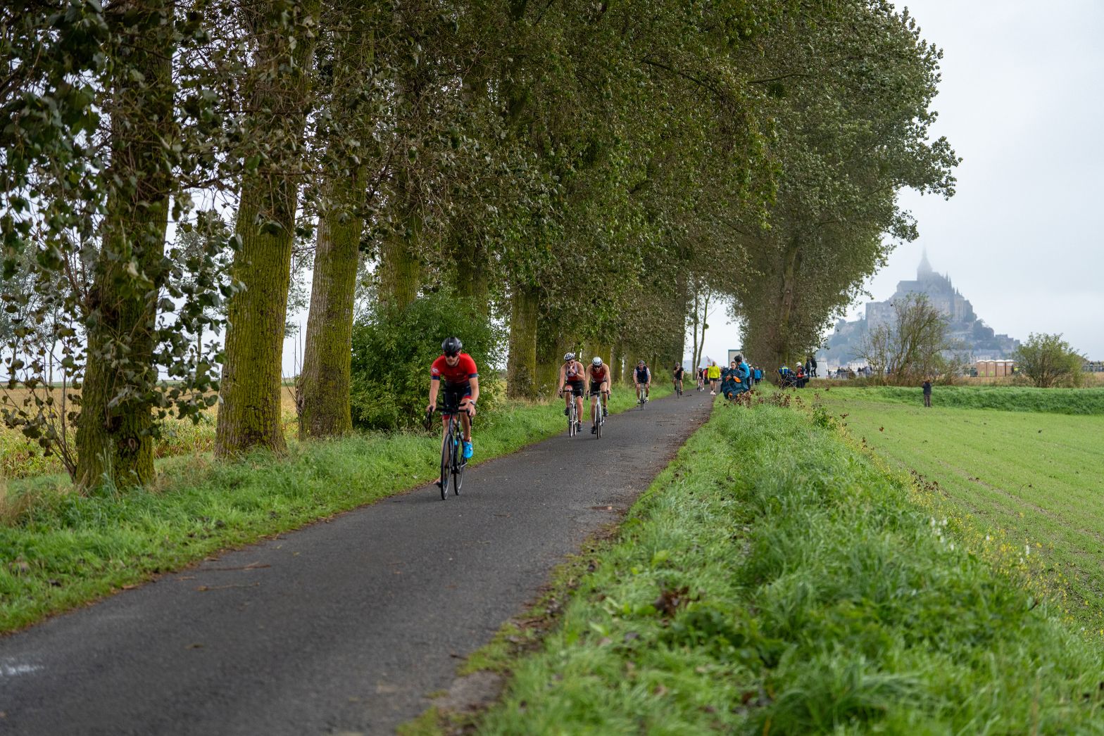 Une fois arrivé à bout de la natation, les athlètes s'engagent sur le parcours vélo pour une distance de 90km à travers la Bretagne et la Normandie.
