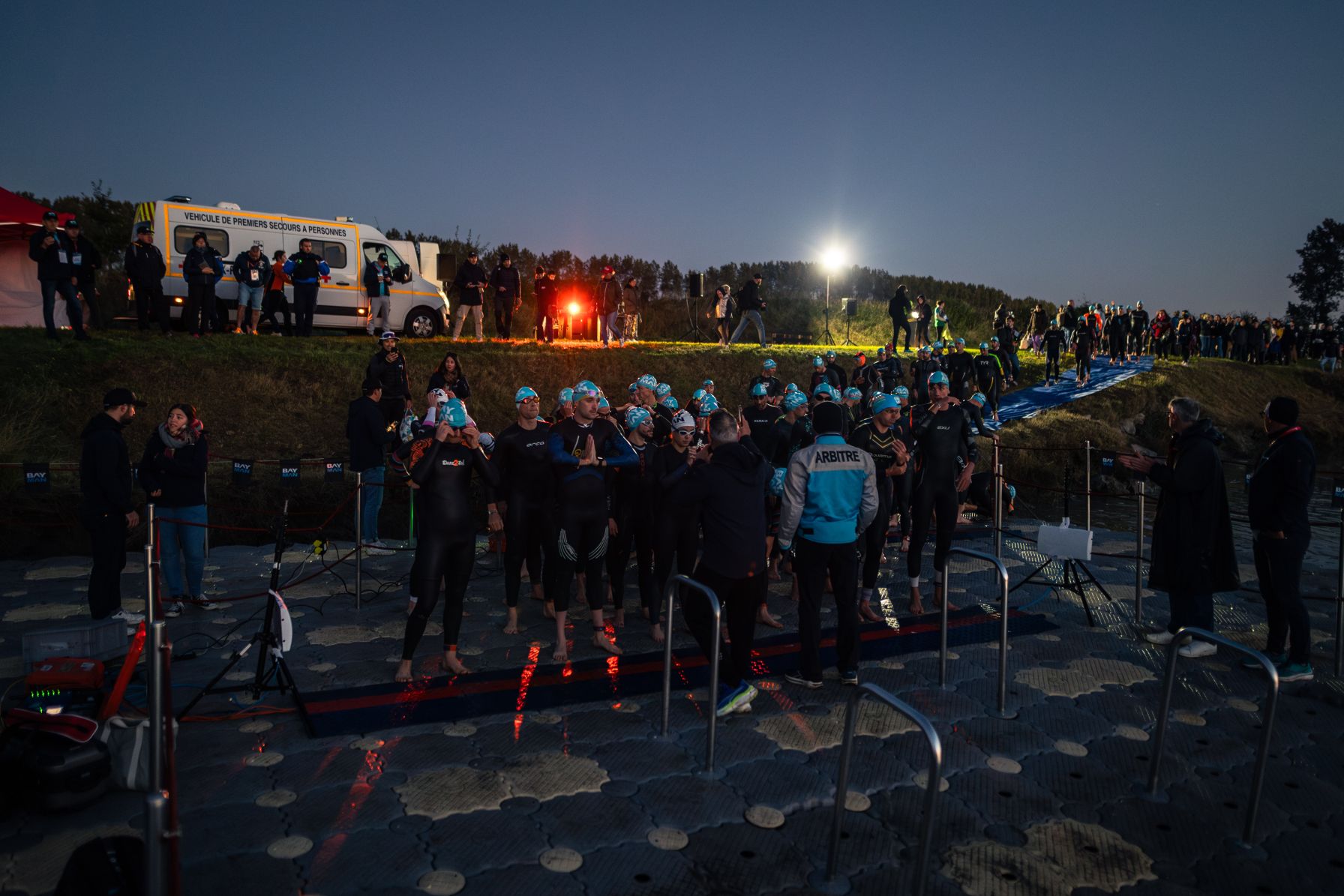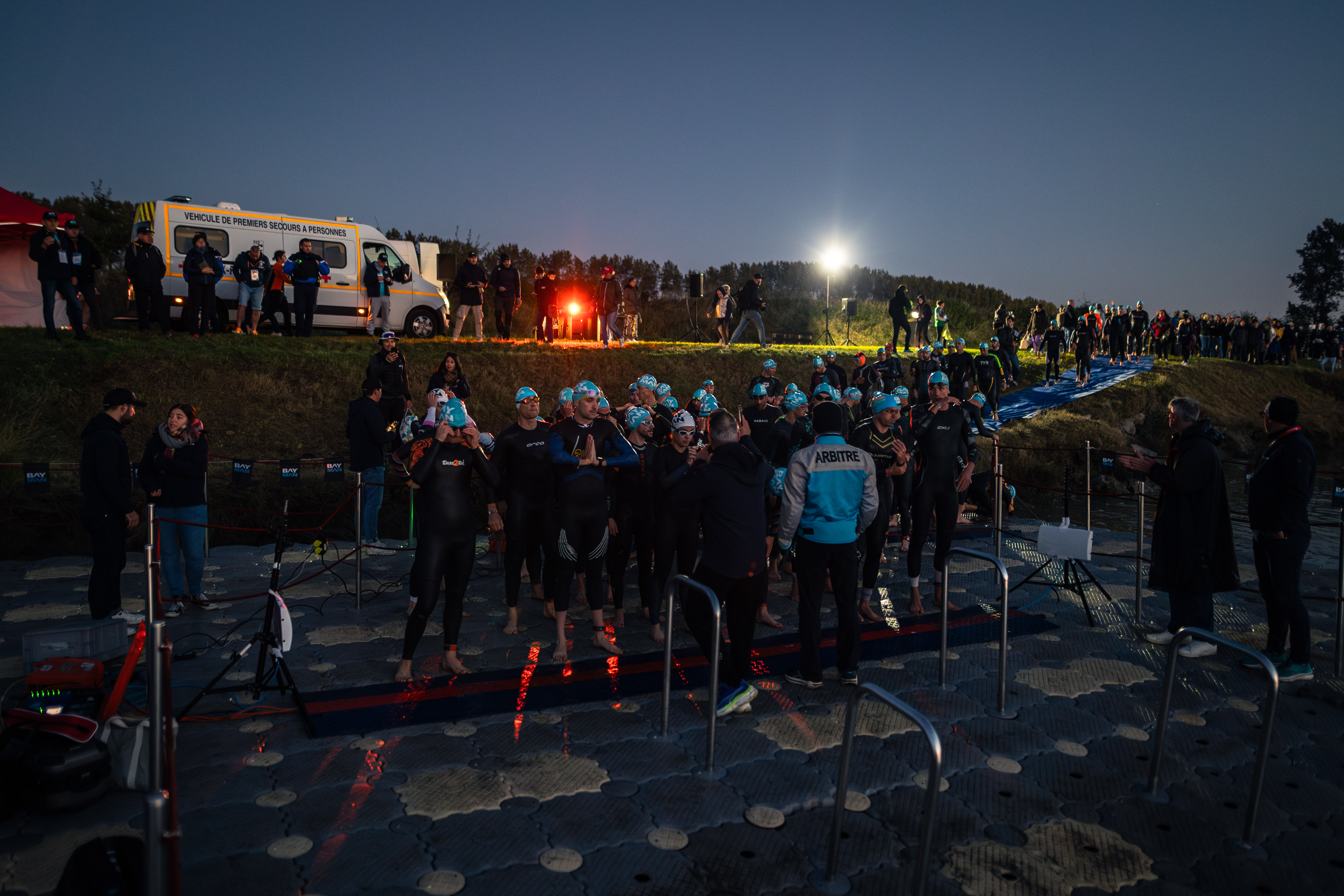 Le départ de la natation se fait à proximité du barrage du Couesnon, les athlètes partent pour 1.9km de nage en eau de mer.