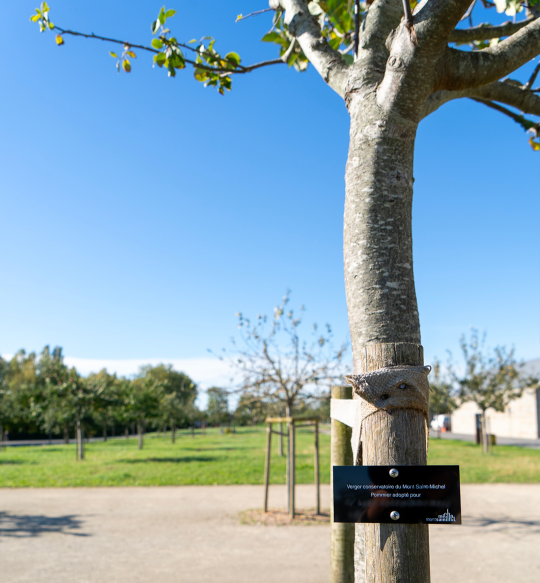 L’établissement public national du Mont Saint-Michel propose au public l’adoption d’un pommier. Pour un don de 500€, vous adoptez un pommier et une plaque à votre nom (ou au nom de la personne de votre choix) sera apposée sur le pommier. Vous aurez même le privilège de recevoir le jus de pomme de la dernière récolte !