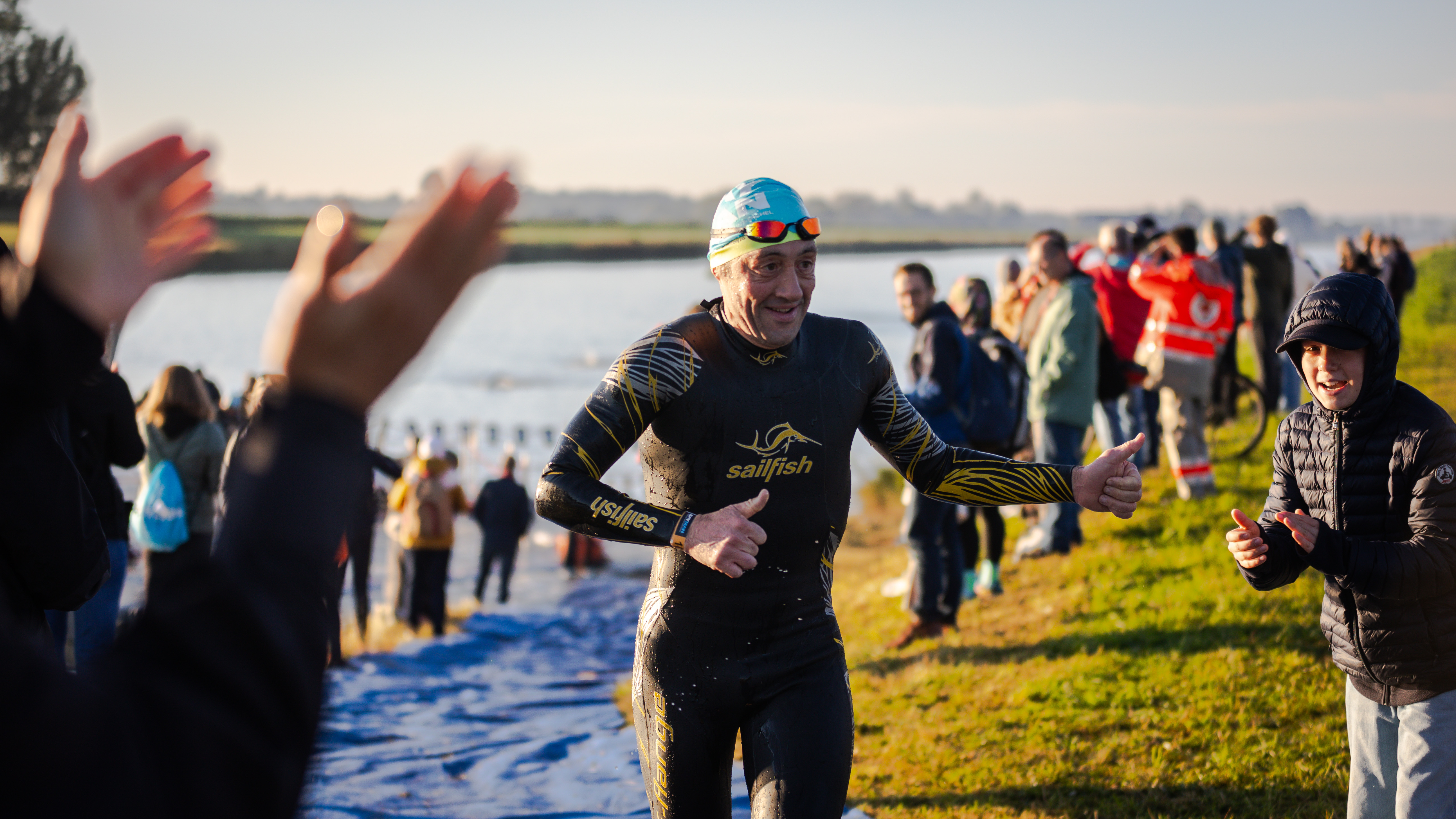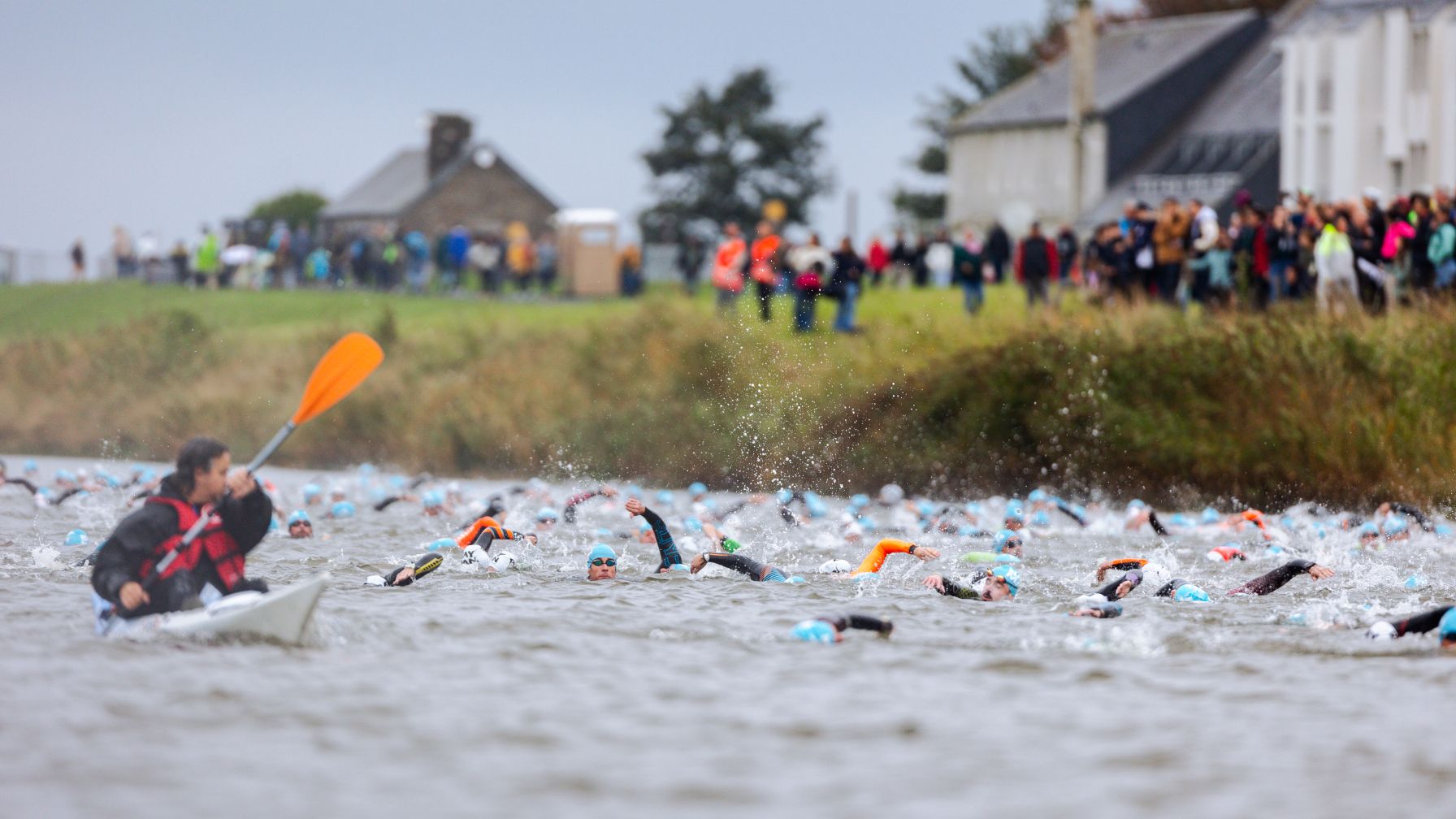 Le départ de la natation se fait à proximité du barrage du Couesnon, les athlètes partent pour 1.9km de nage en eau de mer.