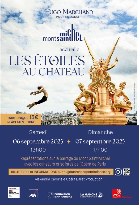 Pour clore la tournée 2025 du fabuleux danseur étoile Hugo Marchand, le Mont Saint-Michel accueillera deux soirées inoubliables de danse classique en plein air avec “Les Étoiles au Château”, organisé par l'Association Hugo Marchand pour la danse et produit par Alexandra Cardinale.